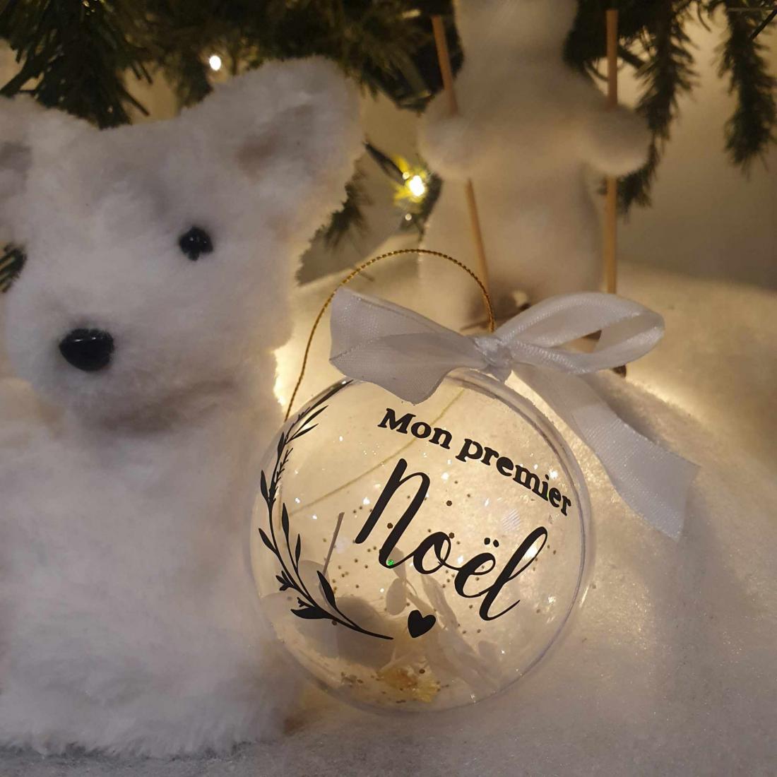 Cette boule de Noël personnalisée, avec l'inscription en vinyle permanent "Mon premier Noël", est un souvenir précieux pour célébrer cette première fête inoubliable. À l'intérieur, des morceaux de feuilles d'or scintillantes et de délicates fleurs séchées ajoutent une touche poétique et raffinée. Ornée d'un joli ruban, elle se suspend élégamment au sapin et devient une décoration symbolique à garder précieusement au fil des ans. Un cadeau idéal pour marquer le tout premier Noël d'un enfant.